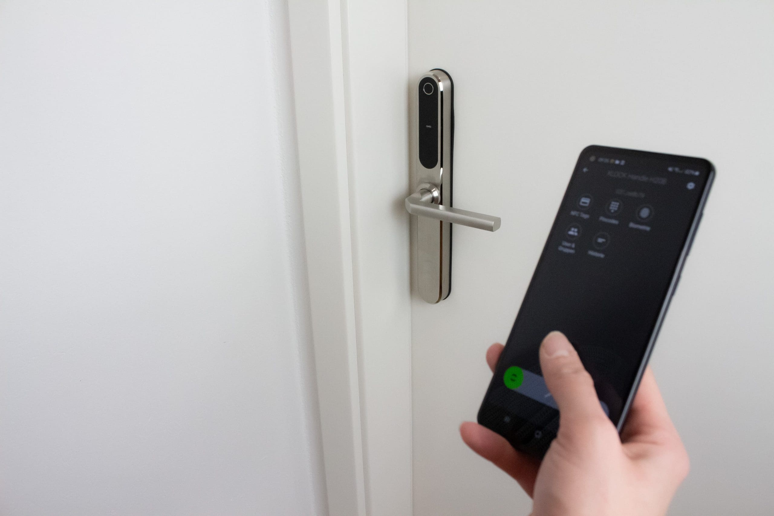 Pametna kljuka XLOCK Handle H20 FS omogoča odklepanje z prstnim odtisom, PIN kodo, karticami ali pametnim telefonom. Z dodatnim Gateway modulom jo lahko povežeš z Wi-Fi omrežjem in upravljaš na daljavo – dodajaš uporabnike, preverjaš zgodovino dostopov in spremljaš stanje vrat.